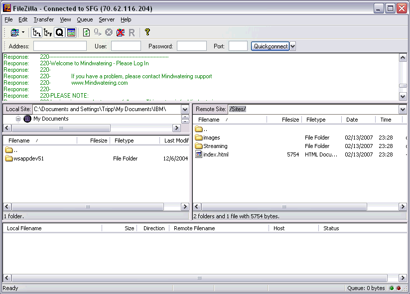 (Note: FTP - File Transfer Protocol is not secure. It is generally not used at Mindwatering except for public upload/download sites.)